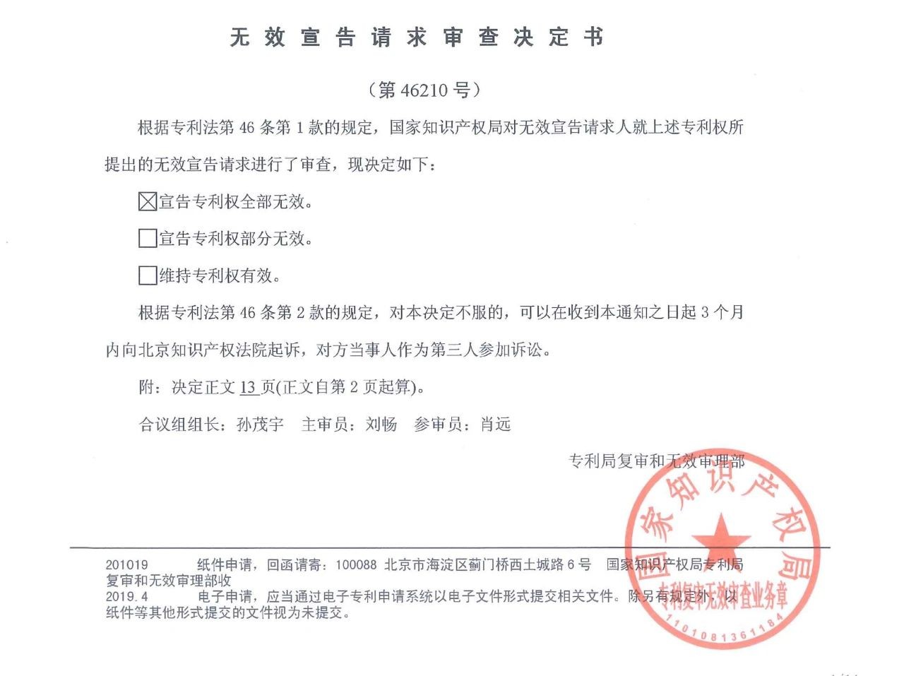 三聚陽光及易聚律所助力重慶金山成功無效麥可龍醫(yī)療專利