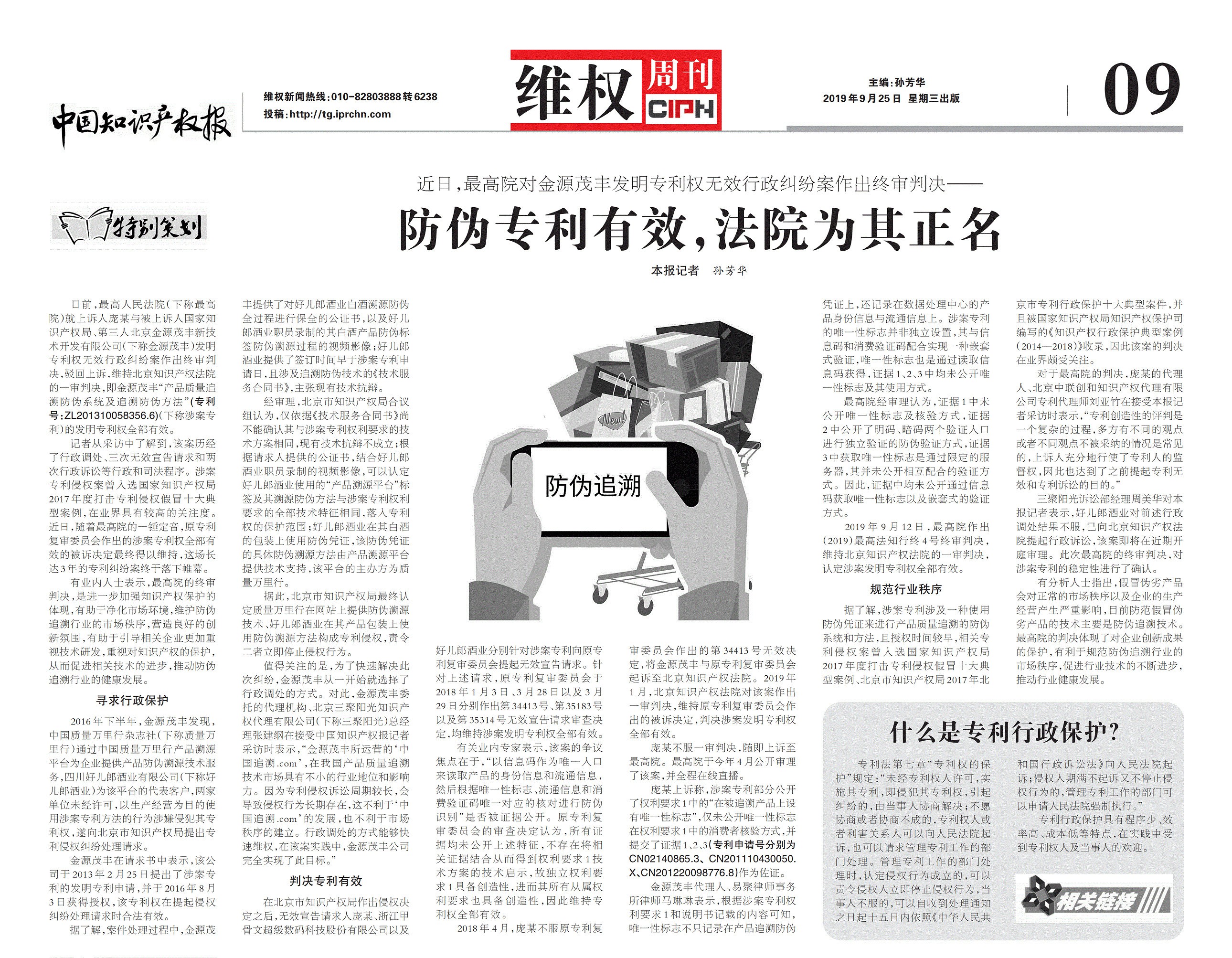 三聚陽光代理的該專利侵權(quán)案曾入選國家知識產(chǎn)權(quán)局2017年度打擊專利侵權(quán)假冒十大典型案例、北京市知識產(chǎn)權(quán)局2017年北京市專利行政保護(hù)十大典型案件,并且被國家知識產(chǎn)權(quán)局知識產(chǎn)權(quán)保護(hù)司編寫的《知識產(chǎn)權(quán)行政保護(hù)典型案例(2014—2018)》收錄,因此本案的判決在業(yè)內(nèi)頗受關(guān)注。9月25日,中國知識產(chǎn)權(quán)報對此案進(jìn)行了特別報道。