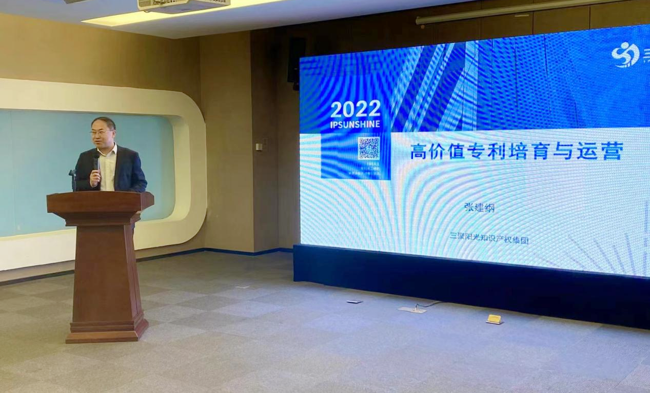 三聚陽(yáng)光總裁張建綱為企業(yè)帶來(lái)了高價(jià)值專利培育與運(yùn)營(yíng)培訓(xùn)。張建綱總裁結(jié)合實(shí)際案例向企業(yè)論述了高價(jià)值專利培育的概念、培育機(jī)制、運(yùn)營(yíng)價(jià)值等方面,并簡(jiǎn)單介紹了三聚陽(yáng)光知識(shí)產(chǎn)權(quán)集團(tuán)的發(fā)展情況。