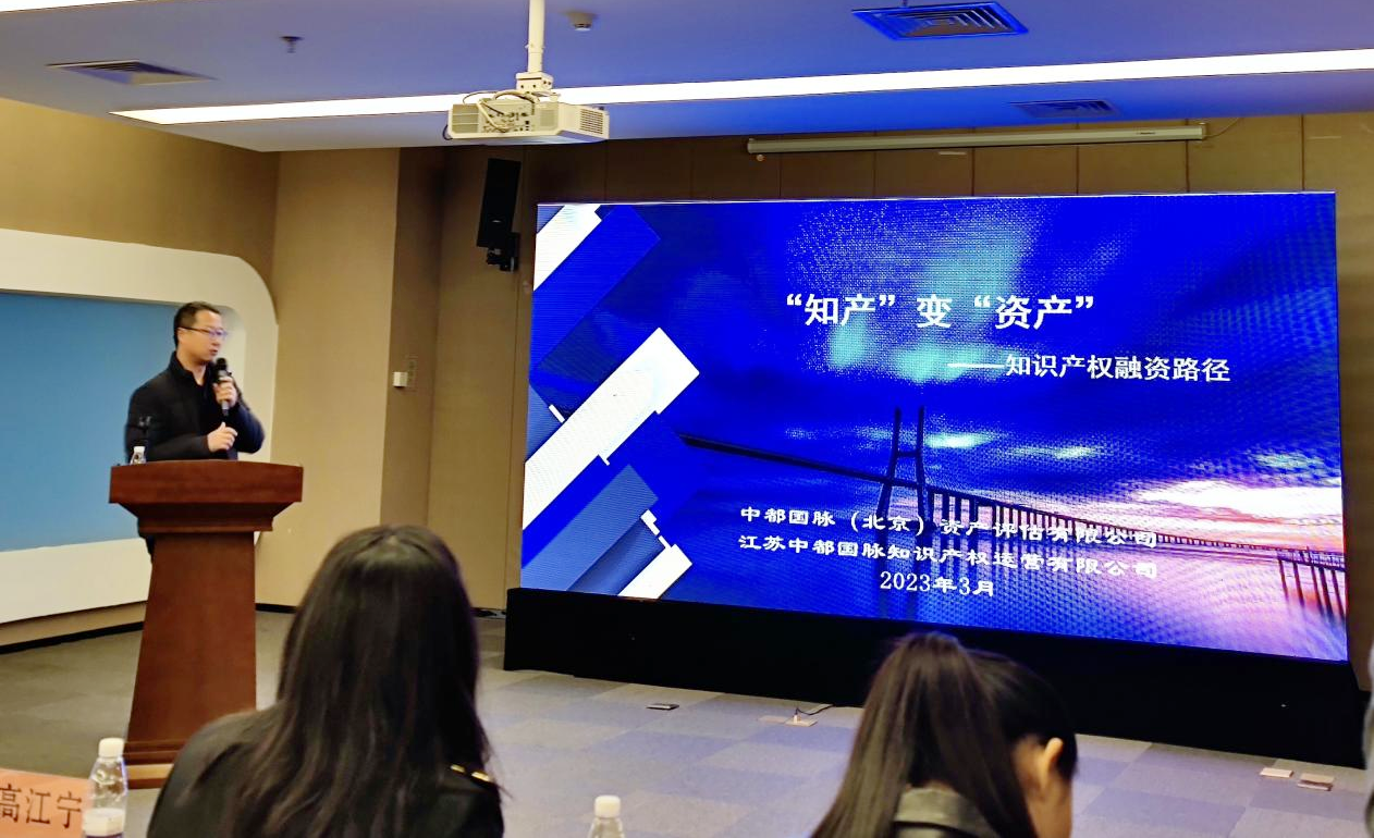 江蘇中都國(guó)脈知識(shí)產(chǎn)權(quán)運(yùn)營(yíng)有限公司總經(jīng)理李光磊為企業(yè)帶來(lái)了知識(shí)產(chǎn)權(quán)金融培訓(xùn)。李光磊總經(jīng)理圍繞知識(shí)產(chǎn)權(quán)作價(jià)入股、知識(shí)產(chǎn)權(quán)質(zhì)押貸款、知識(shí)產(chǎn)權(quán)證券化等方面,詳盡介紹了知識(shí)產(chǎn)權(quán)金融相關(guān)服務(wù)及價(jià)值。