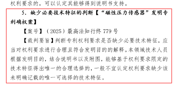 4月22日,最高人民法院發(fā)布《最高人民法院知識(shí)產(chǎn)權(quán)法庭裁判要旨摘要(2025)》。該摘要系從最高人民法院知識(shí)產(chǎn)權(quán)法庭2025年審結(jié)的3146件案件中篩選132件案件、提煉159條裁判要旨形成,旨在集中展示技術(shù)類知識(shí)產(chǎn)權(quán)和壟斷案件中的司法理念、審理思路和裁判方法,供社會(huì)各界研究參考。由三聚陽(yáng)光代理的3件案件被收錄其中,分別涉及專利授權(quán)確權(quán)案件中對(duì)“缺少必要技術(shù)特征的判斷”“命名不同的技術(shù)特征是否構(gòu)成區(qū)別技術(shù)特征的認(rèn)定”以及“改進(jìn)動(dòng)機(jī)的認(rèn)定”等問(wèn)題的裁判規(guī)則。