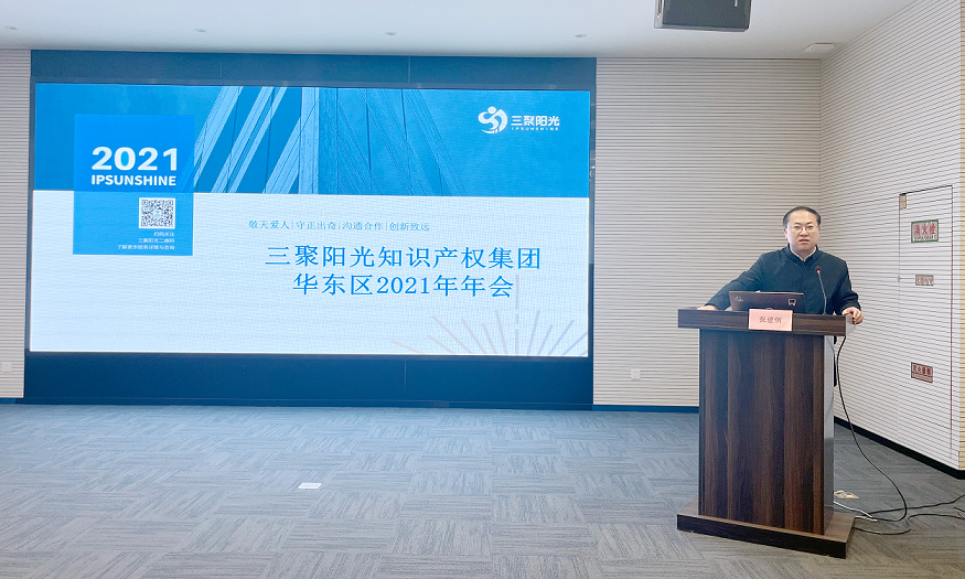 工作匯報環(huán)節(jié)最后,集團(tuán)總裁張建綱做總結(jié)致辭,肯定了華東區(qū)各公司過去一年的工作成果,并介紹了三聚陽光知識產(chǎn)權(quán)集團(tuán)2021年的整體營收情況。張建綱總裁表示,2021年是三聚陽光成立20周年后制定的“五年發(fā)展計(jì)劃”中的第一年,這一年集團(tuán)職工人數(shù)突破400人,總體營收突破億元大關(guān),向?qū)崿F(xiàn)第一個5年計(jì)劃邁出了堅(jiān)實(shí)的一步。張建綱總裁期望華東區(qū)各位同仁始終堅(jiān)持集團(tuán)以“大客戶、人才、全產(chǎn)業(yè)鏈服務(wù)、信息化”為核心的發(fā)展戰(zhàn)略為指引,在新的一年不斷為客戶提供更優(yōu)質(zhì)、更全面的全產(chǎn)業(yè)鏈知識產(chǎn)權(quán)服務(wù)。