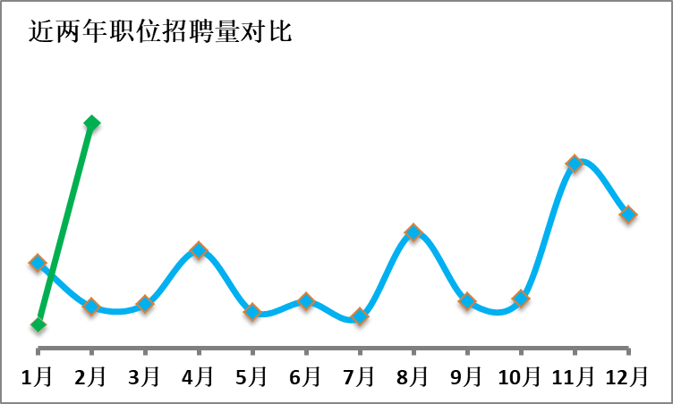 圖1反映了近年來專利分析師的職位需求量的變化趨勢??梢钥闯觯?020年受疫情影響外,近五年社會對專利分析師的需求保持穩(wěn)定。在圖2中,藍色折線代表2021年招聘職位量,綠色折線為2022年一、二月份招聘量??梢悦黠@看出,2022年二月社會需求迎來了大爆發(fā),同比增長了569%,達到了歷史新高,而每年招聘的第一個黃金季通常在三、四月份,因此有理由相信,屆時專利分析師的社會需求統(tǒng)計數(shù)據(jù)會更亮眼。